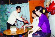 今天,易新群和黄小南就要起程赴巴别结婚了;这些天来,幸福就写在他们脸上。 昨日下午,南海官窑的“姐姐”潘翠萍,按照广东传统习俗,给新人两个红包,还给小南一枚金戒指。羞怯的黄小南已进入了新娘的角色,她掩饰不住内心的喜悦,悄悄地将自己装扮了起来。记者留意到了小南手指上那枚闪闪发光的戒指,小易说,那是远在湖南的“妈妈”吴小云送的,还有一条金项链、一对金耳环。 一个“妈妈”不是亲妈妈,一个“姐姐”不是亲姐姐,可新群与她们的故事却感人至深。“妈妈”说,世界上没有无缘无故的爱,如果说我是真心实意地付出了,那是因为他确实值得人们去爱。“姐姐”说,是小易挽救了我和我的一家。
